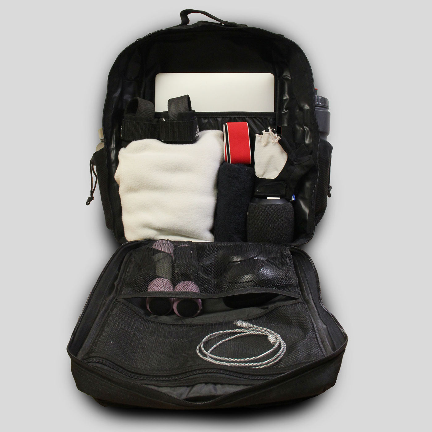 1. Inhalt leeren: Entferne alle Gegenstände aus dem Rucksack, inklusive kleine Taschen und Fächer.